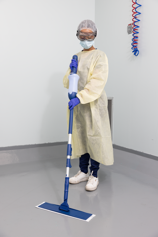 - Reusable pouch allows mop pads to be saturated and stored between points of use